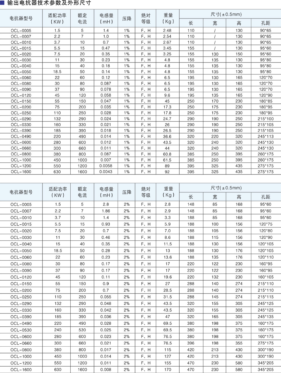 变频器用输出电抗器技术参数