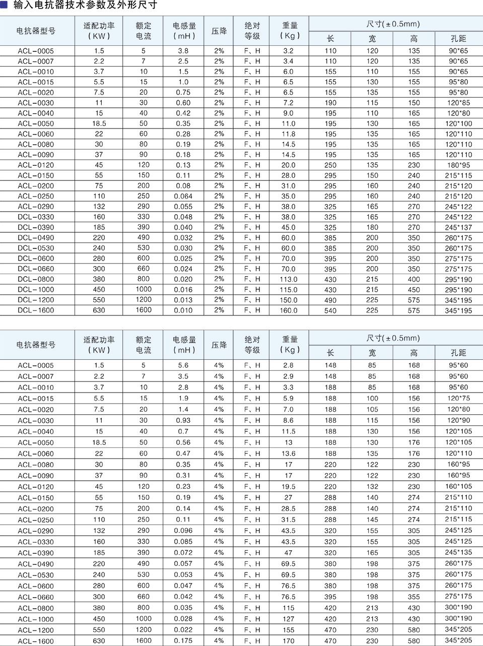 变频器用输入电抗器技术参数