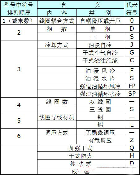 电力变压器产品型号其它的字母排列顺序及涵义。