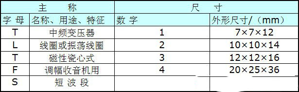 表所示中频变压器型号主称用字母与外形尺寸用数字的意义表