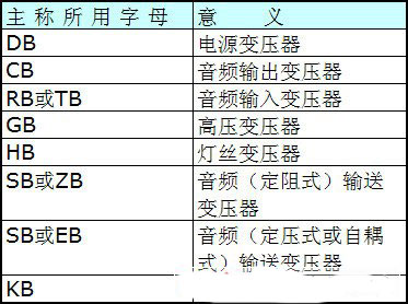 表是低频变压器型号主称所用字母的意义